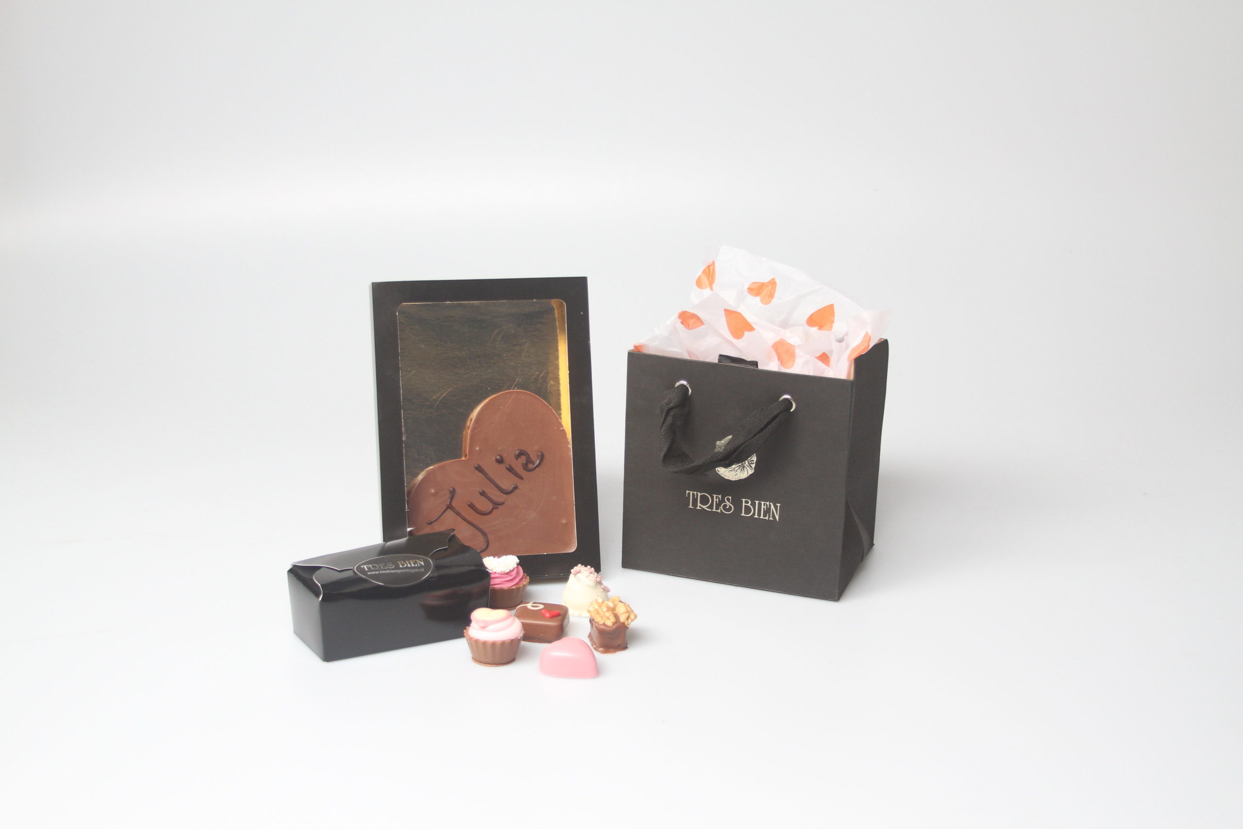 Bij Très Bien maken we onze bonbons en chocolade op ambachtelijke wijze, helemaal met de hand. Onze chocolatiers gebruiken hiervoor alleen de allerbeste Callebaut chocolade, en dat proef je. De kleine Valentijn goodiebag zit vol met heerlijke bonbons met verschillende verrassende vullingen. Uiteraard hebben we ze allerlei leuke vormen en decoraties gegeven die helemaal passen bij Valentijn.